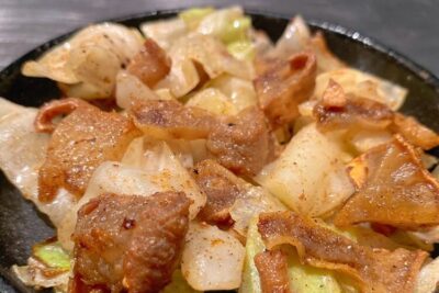 大阪名物油かす!!カリカリに焼いた油かすとキャベツを炒めた旨味たっぷりの油かす。シンプルに塩胡椒のみで仕上げてます。噛めば噛むほどでる旨味を堪能してみて下さい。